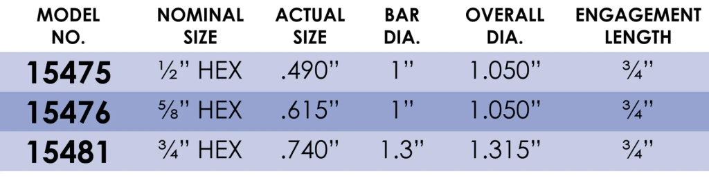 • Designed to provide proper loads for self-removal of the wrench weight