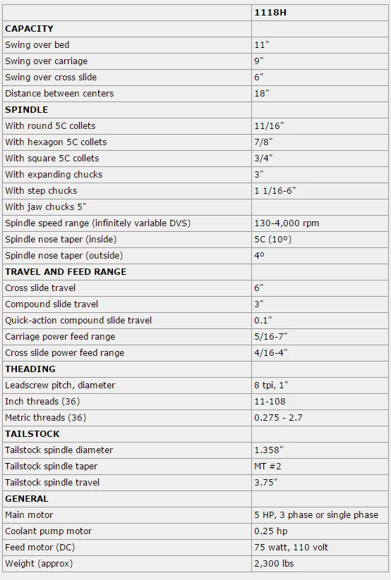 The Sharp 1118H Toolroom Lathe is built with alloy steel bed ways for achieving high precision machining. This Toolroom lathe is equipped with 5C collet closure, ideal for machining small precision parts, 11” x 18” capacity, 5 HP motor, digital variable speed 50 millionth TIR accuracy, 14.5” x 18” capacity, Fagor control with conversational programming, electronic handwheel (MPG), 5 HP motor and digital variable speed. Click second picture for specs.