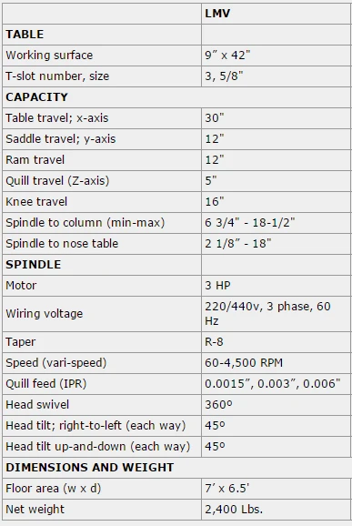 The Sharp LMV is an ideal milling machine for most shops. All machines can be fitted with after-market 2 or 3-axis Digital Readout Systems (Acu-Rite, Newall, Mitutoyo, or Fagor) or a 2 or 3-axis Acu-Rite Millpwr system.