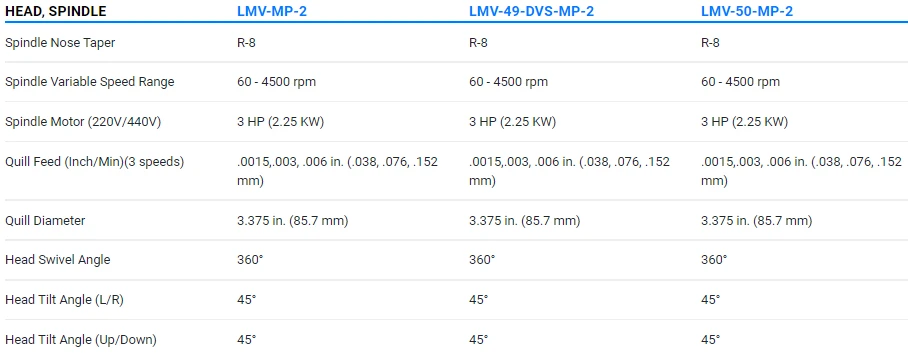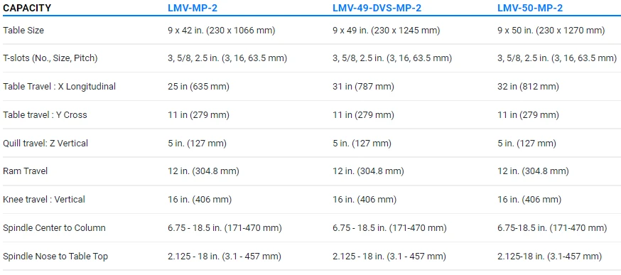 • (LMV-50-MP2) 9 x 50” table, 11 x 32 x 5” travel, vari speed