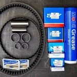 Rebuild kit for a Bridgeport Series I mill with a 2hp head. Kit includes 1105 Drive Belt, 1536 Timing Belt, 1036-20 Bushing Repair Kit, 1542 Bearing(1), 1558 Bearing(2), 1277 Bearing(2), 1491 Bearing(2), LP-1 Grease(2)
